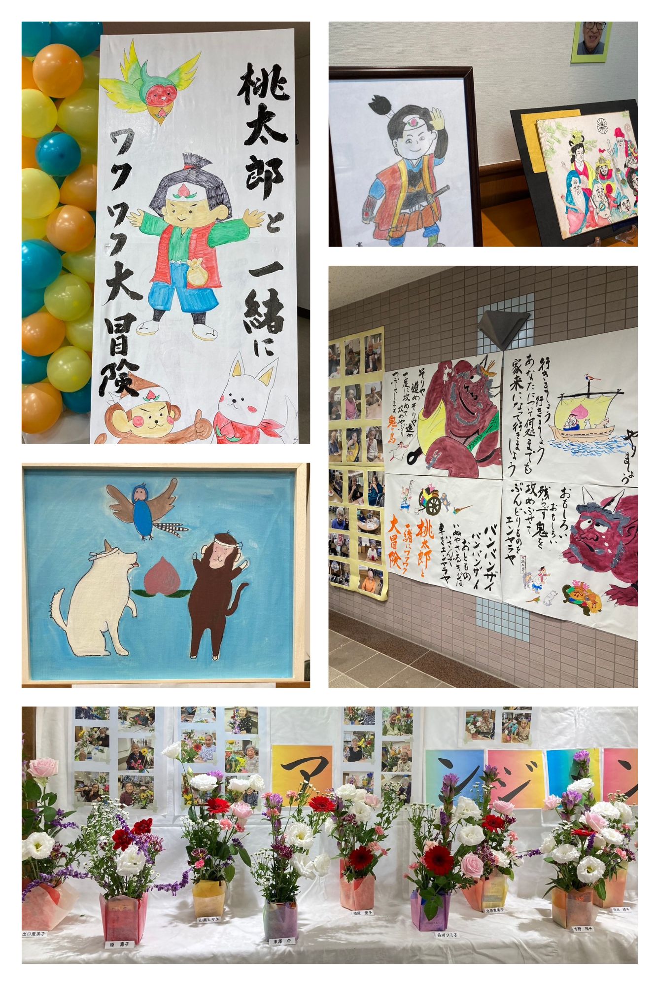 大寿苑には桃太郎のお話の屏風が飾られています。