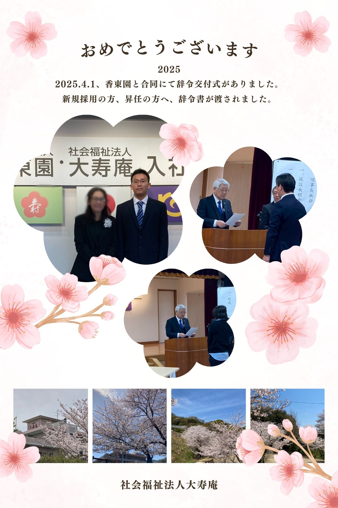 香東園・大寿庵合同の辞令交付式が、香東園にて開催されました。
